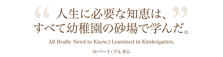 「人生に必要な知恵はすべて幼稚園の砂場で学んだ」。アメリカの作家、ロバート・フルガムの言葉です。