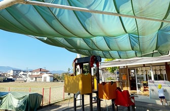 泥遊びや砂遊びに夢中のお友達がいっぱい。UVシェード付きなので、安心して遊べるよ♪