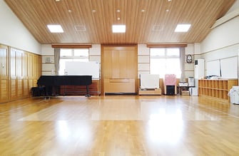 屋根に井戸水が流れ、天井に通風口がある3~5歳児の保育室は、いつも風が抜けて、暑い日田の夏でも快適に過ごせます。なお、月隈こども園では、すべての保育室にエアコン、空気清浄機、オゾン式除菌消臭器を完備しています。