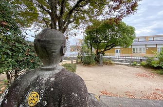園の西側は、廣瀬淡窓先生が開いた「桂林荘」跡があり、淡窓先生がこどもたちを見守っています。